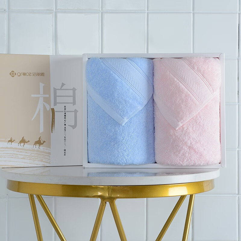 洁丽雅毛巾礼盒2条装纯棉面巾素色舒适柔软吸水毛巾 20230009