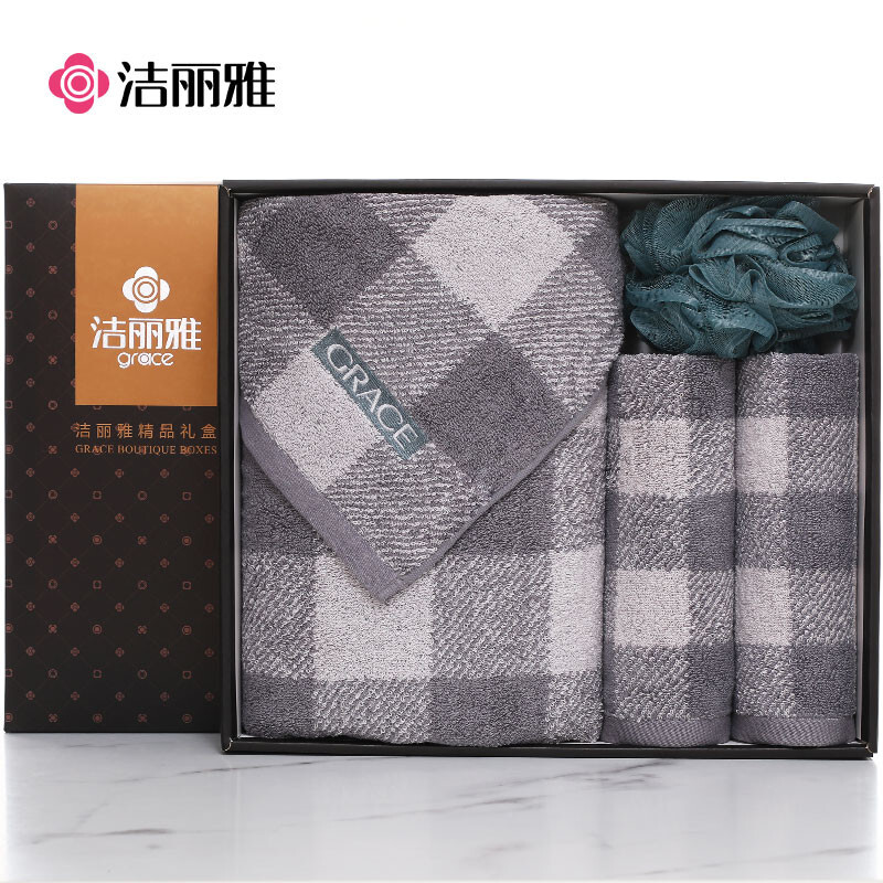 洁丽雅GRACE丝路传奇浴巾四件套礼盒 A类纯棉加厚礼品盒套装 浴巾*1毛巾*2 ...