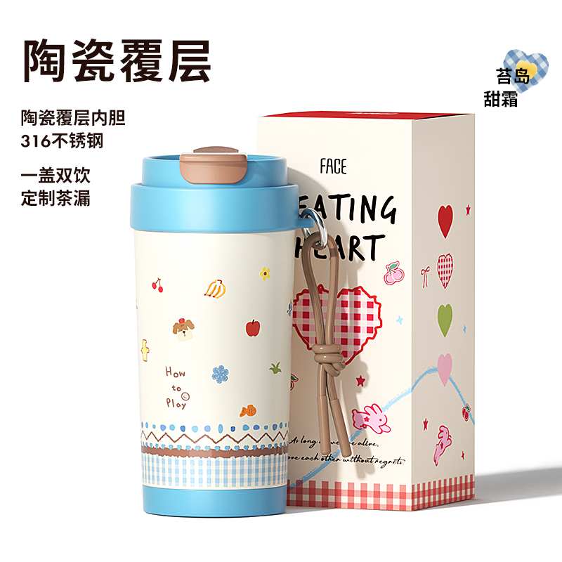 FACE绵绵双饮杯450ml 小狗爱心