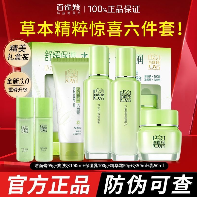 百雀羚草本精萃保湿透亮6件套补水保湿水乳礼盒护肤品