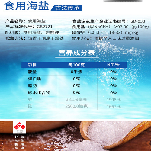 鲁晶加碘食用海盐细盐家用细盐加碘食盐不含抗结剂含碘盐